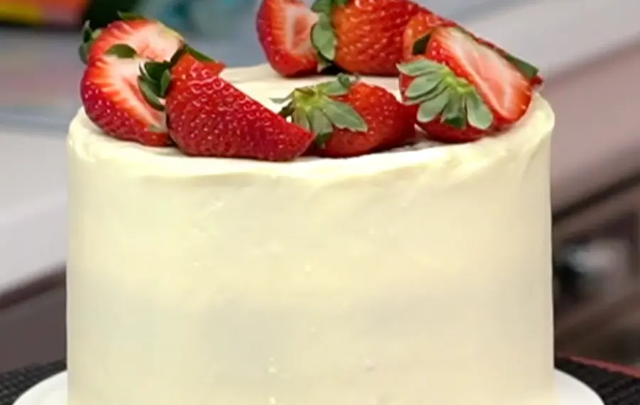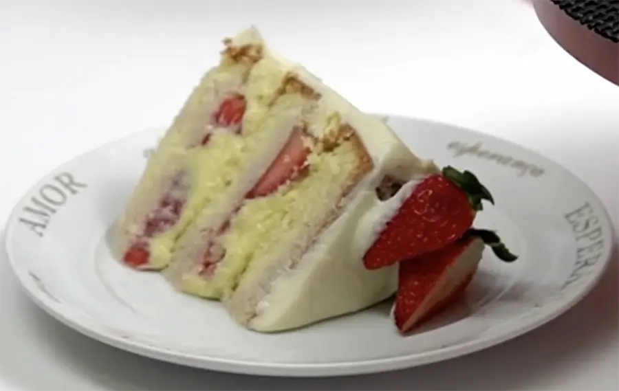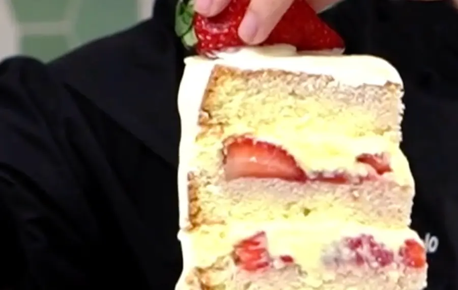 Sim, um bolo de morango perfeito! Sem risco de azedar e sem risco do bolo cair.