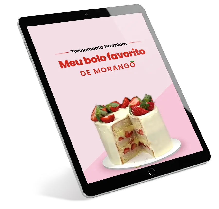 É um treinamento completo, com técnicas, dicas e segredos que aprendi ao longo de uma década na confeitaria — tudo para que você prepare o meu bolo favorito de morango, mesmo que nunca tenha feito um antes.